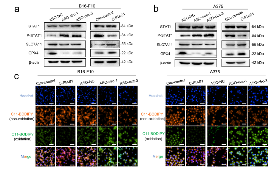 Zang X, He X Y, **ao C M, et al. Circular RNA-encoded oncogenic PIAS1 variant blocks immunogenic ferroptosis by modulating the balance between SUMOylation and phosphorylation of STAT1[J]. Molecular Cancer, 2024, 23(1): 207.