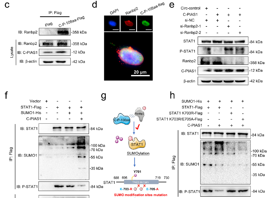 图5.circPIAS1通过招募Ranbp2增强STAT1的SUMO化修饰来抑制STAT1的磷酸化