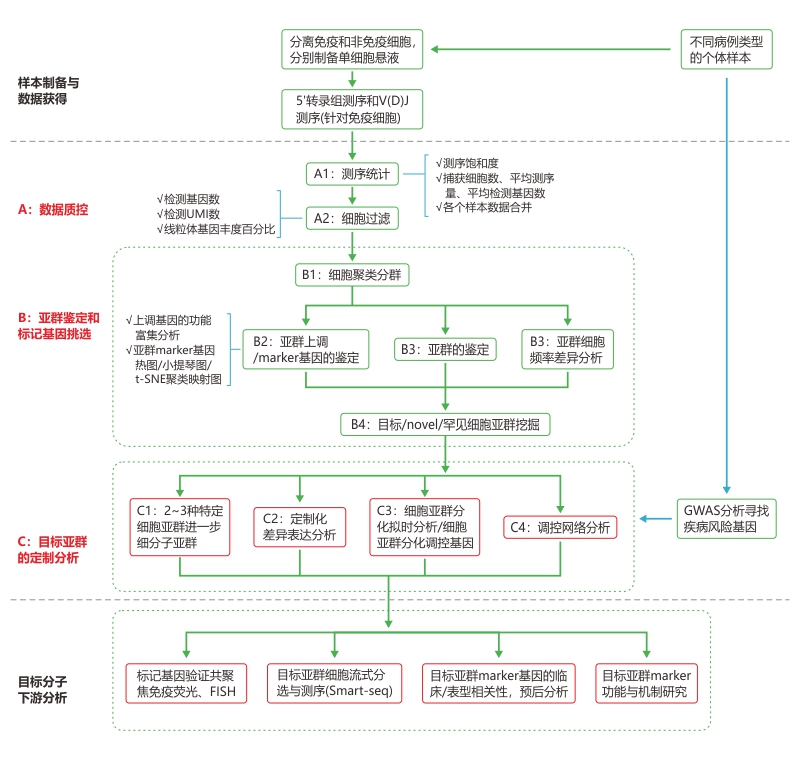 10x Genomics单细胞转录组测序(single cell RNA-seq, scRNA-seq),是在单个细胞水平对 mRNA 进行高通量测序的一项新技术,其能够以高通量和单分子分辨率研究单个细胞表达谱,揭示复杂细胞群体的异质性,避免单个细胞的基因表达信号被群体的平均化所掩盖。